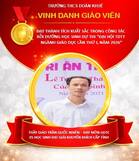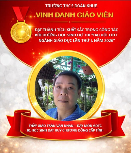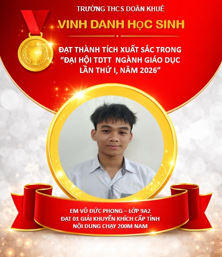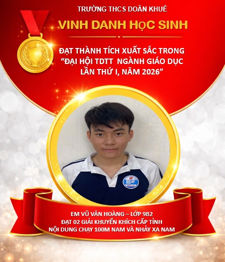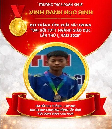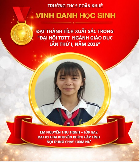 Tại Hội thi Thể dục thể thao học sinh phổ thông tỉnh Ninh Bình lần thứ I năm 2026, diễn ra từ ngày 15/4/2026 đến ngày 20/4/2026 tại phường Hoa Lư, học sinh trường THCS Doãn Khuê đã tích cực tham gia và đạt được các thành tích cấp tỉnh đáng ghi nhận.