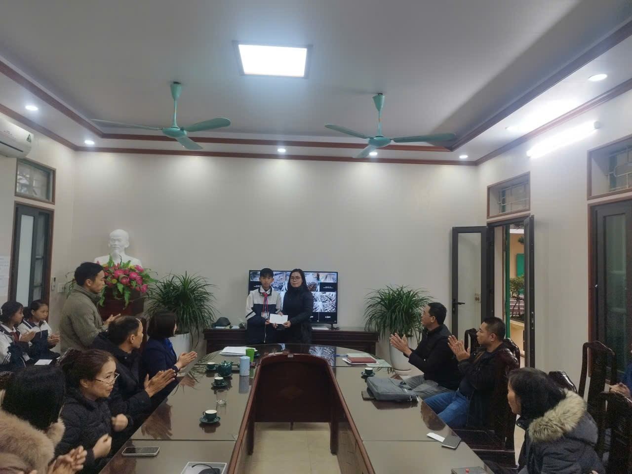 Trong chương trình trao quà hôm nay, bên cạnh những phần quà được trao từ lợi nhuận của Gian hàng Thanh niên, ông Trần Đình Thi (Anh trai cô giáo Trần Thị Ánh Tuyết) cũng dành tặng một phần quà đặc biệt cho em Đỗ Trọng Tấn – học sinh lớp 8A, một học sinh có hoàn cảnh đặc biệt khó khăn của nhà trường: Mồ côi mẹ, bố hiện đang ốm nặng, phải có người thường xuyên chăm sóc. Dù hoàn cảnh gia đình còn nhiều khó khăn, em vẫn luôn nỗ lực vươn lên trong học tập, rèn luyện và có ý thức phấn đấu tốt.