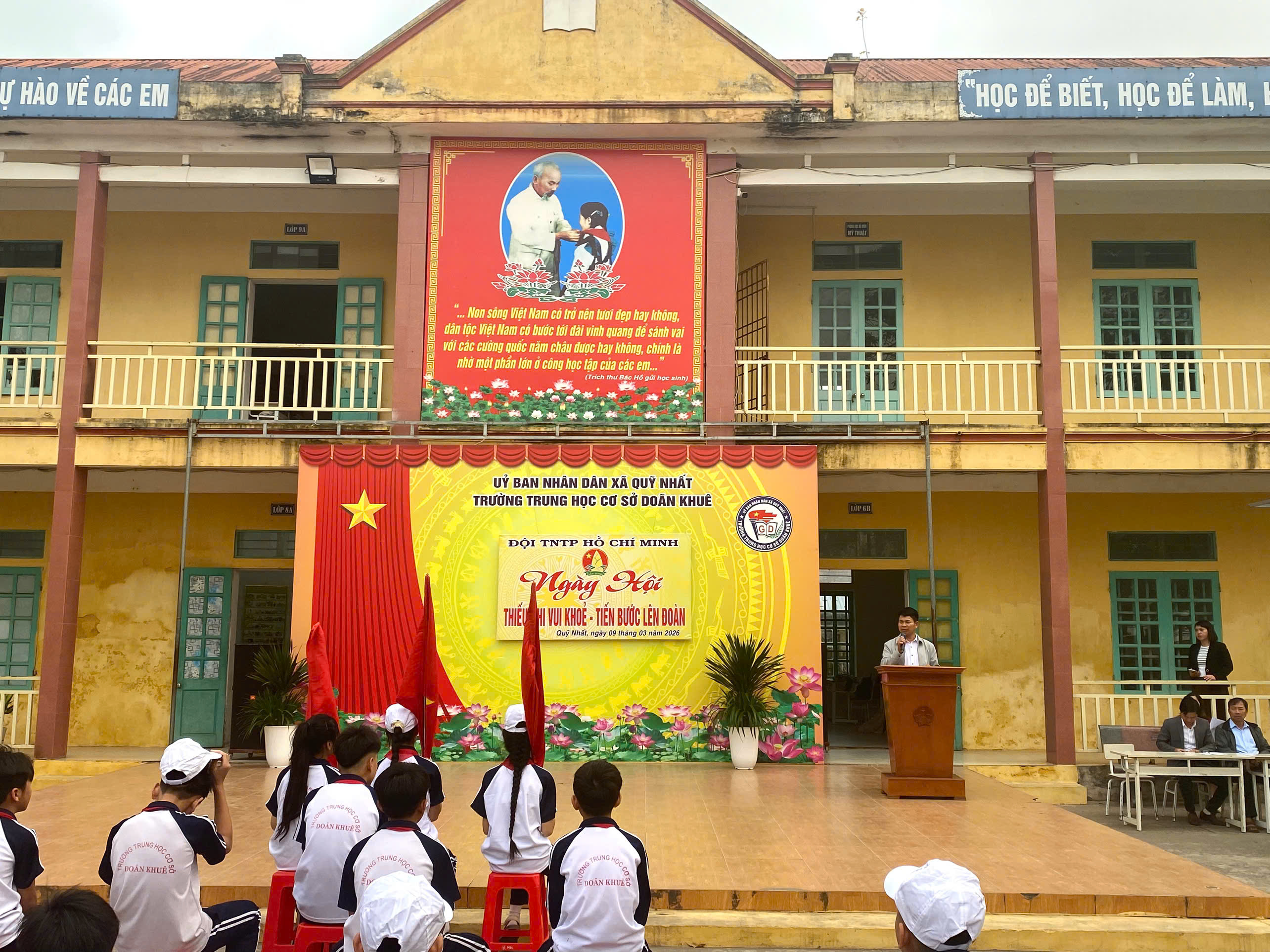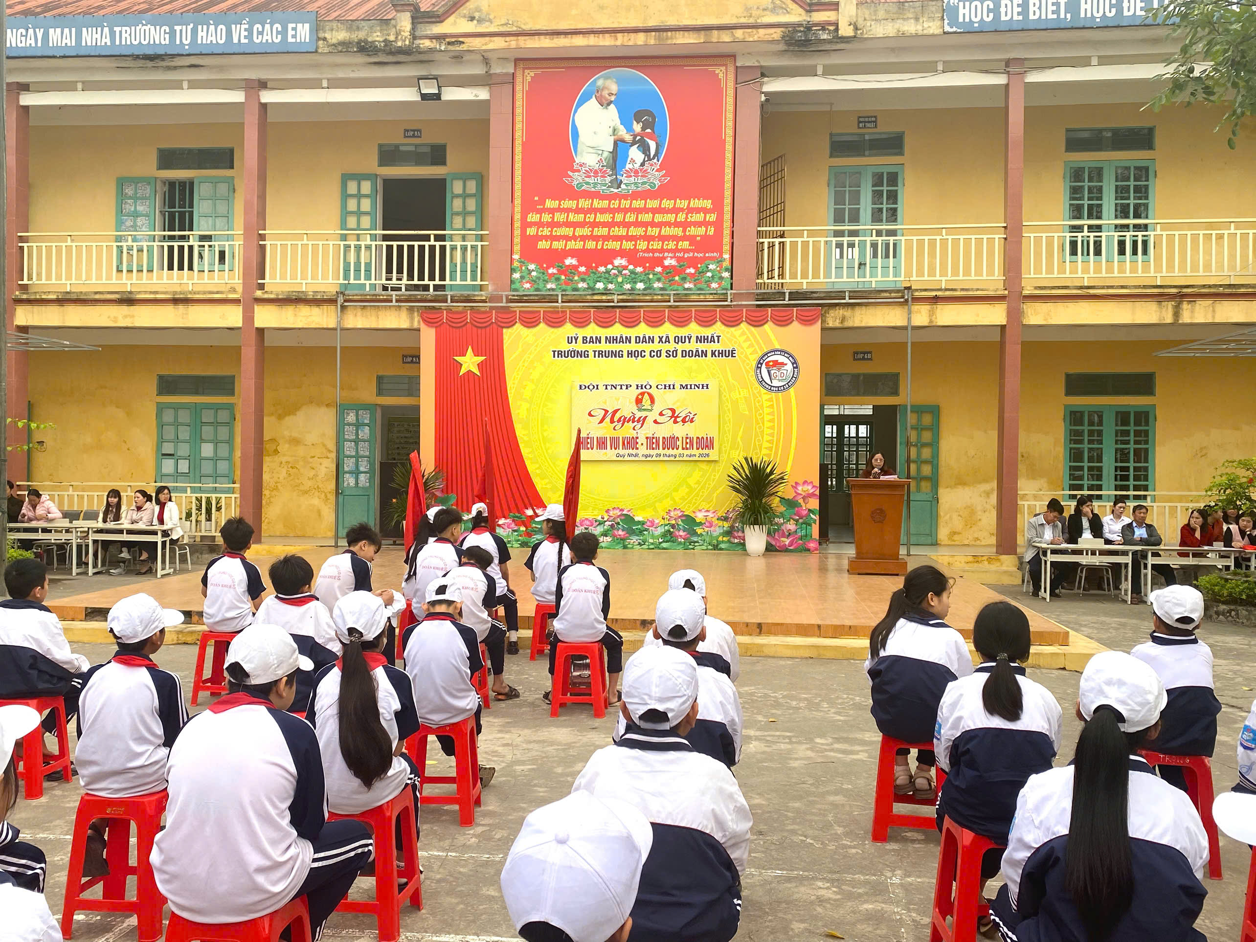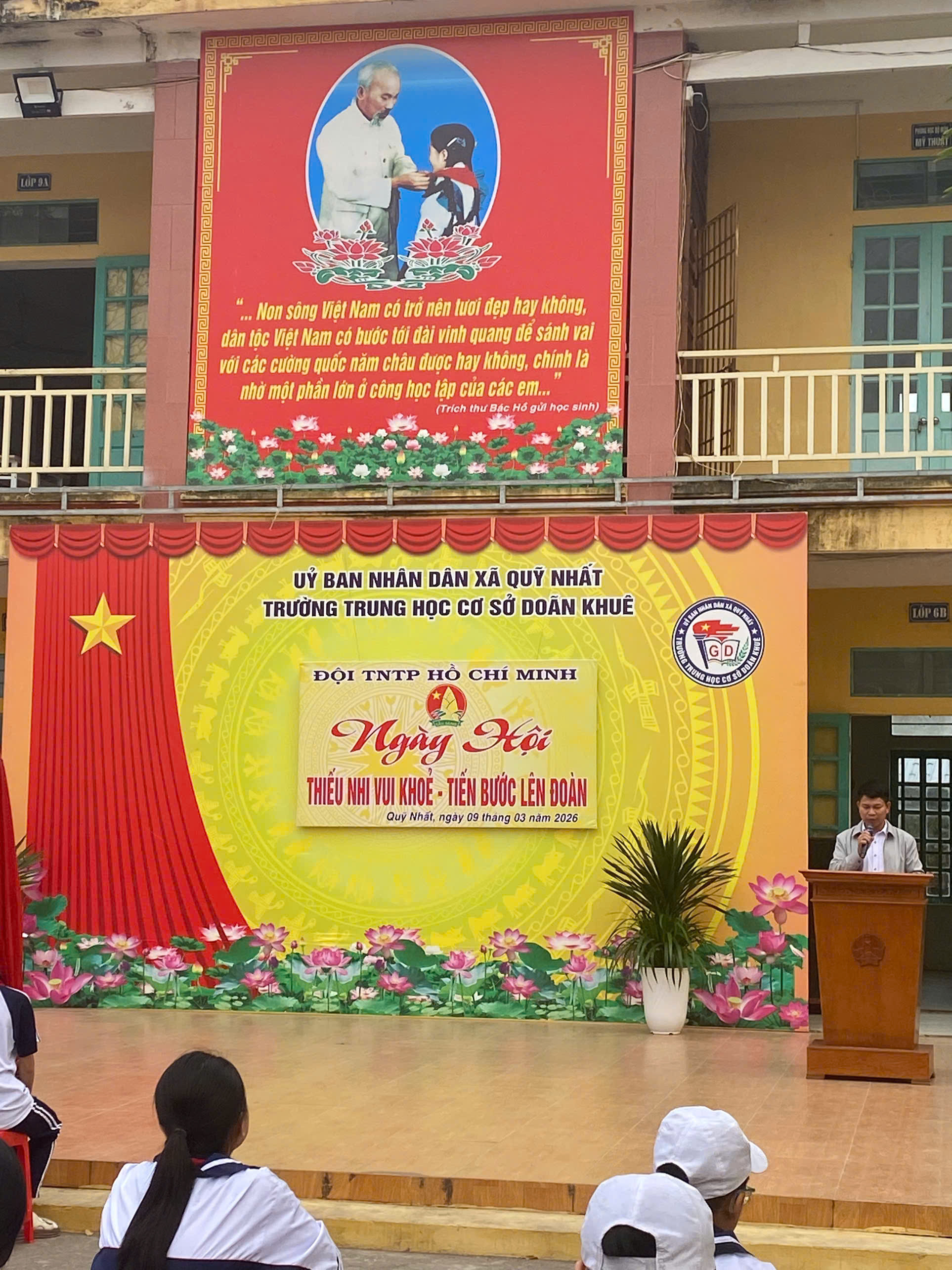 Hòa chung không khí thi đua sôi nổi của thiếu nhi cả nước hướng tới những ngày lễ lớn của Đoàn – Đội, sáng ngày 09/3/2026, Liên đội Trường THCS Doãn Khuê, xã Quỹ Nhất đã long trọng tổ chức ngày hội “Thiếu nhi vui khỏe – Tiến bước lên Đoàn” trong không khí vui tươi, phấn khởi và đầy ý nghĩa.