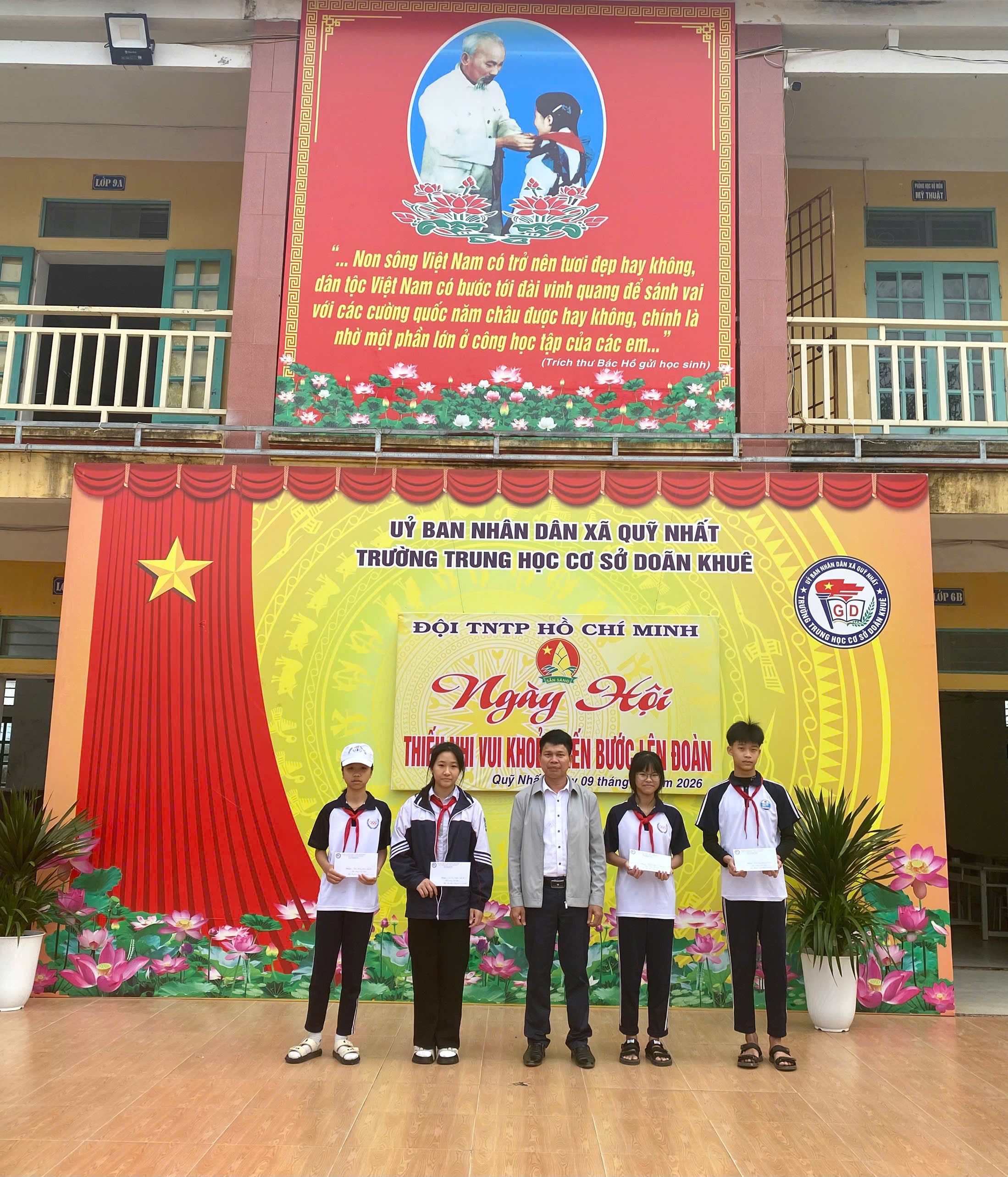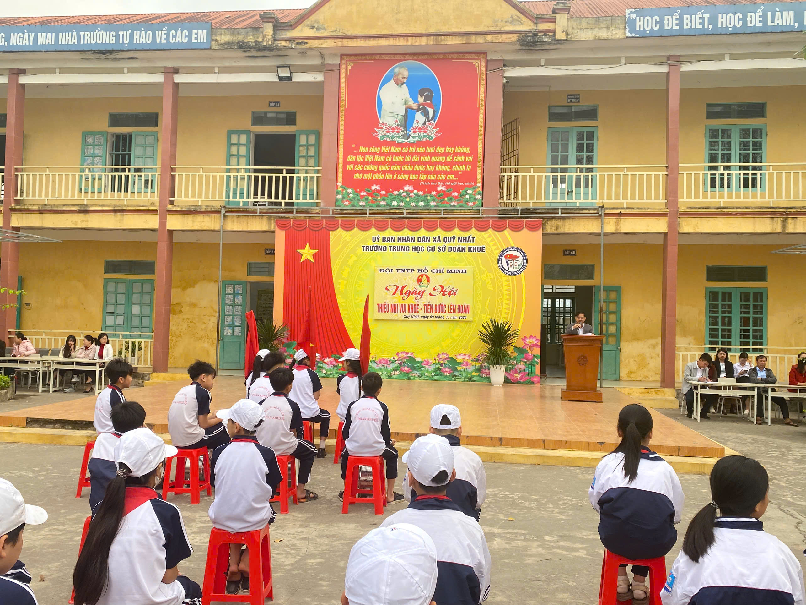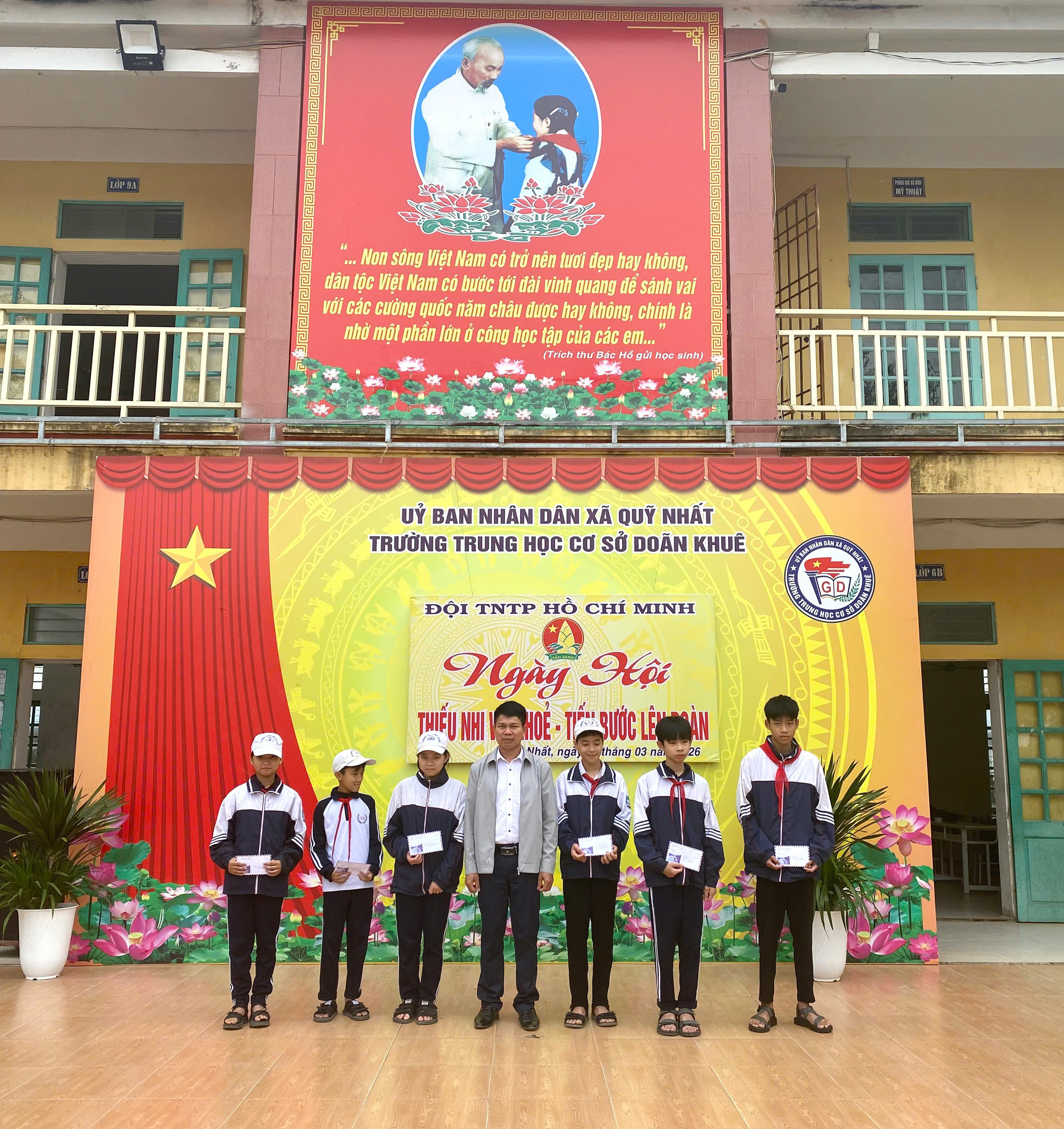 Hòa chung không khí thi đua sôi nổi của thiếu nhi cả nước hướng tới những ngày lễ lớn của Đoàn – Đội, sáng ngày 09/3/2026, Liên đội Trường THCS Doãn Khuê, xã Quỹ Nhất đã long trọng tổ chức ngày hội “Thiếu nhi vui khỏe – Tiến bước lên Đoàn” trong không khí vui tươi, phấn khởi và đầy ý nghĩa.