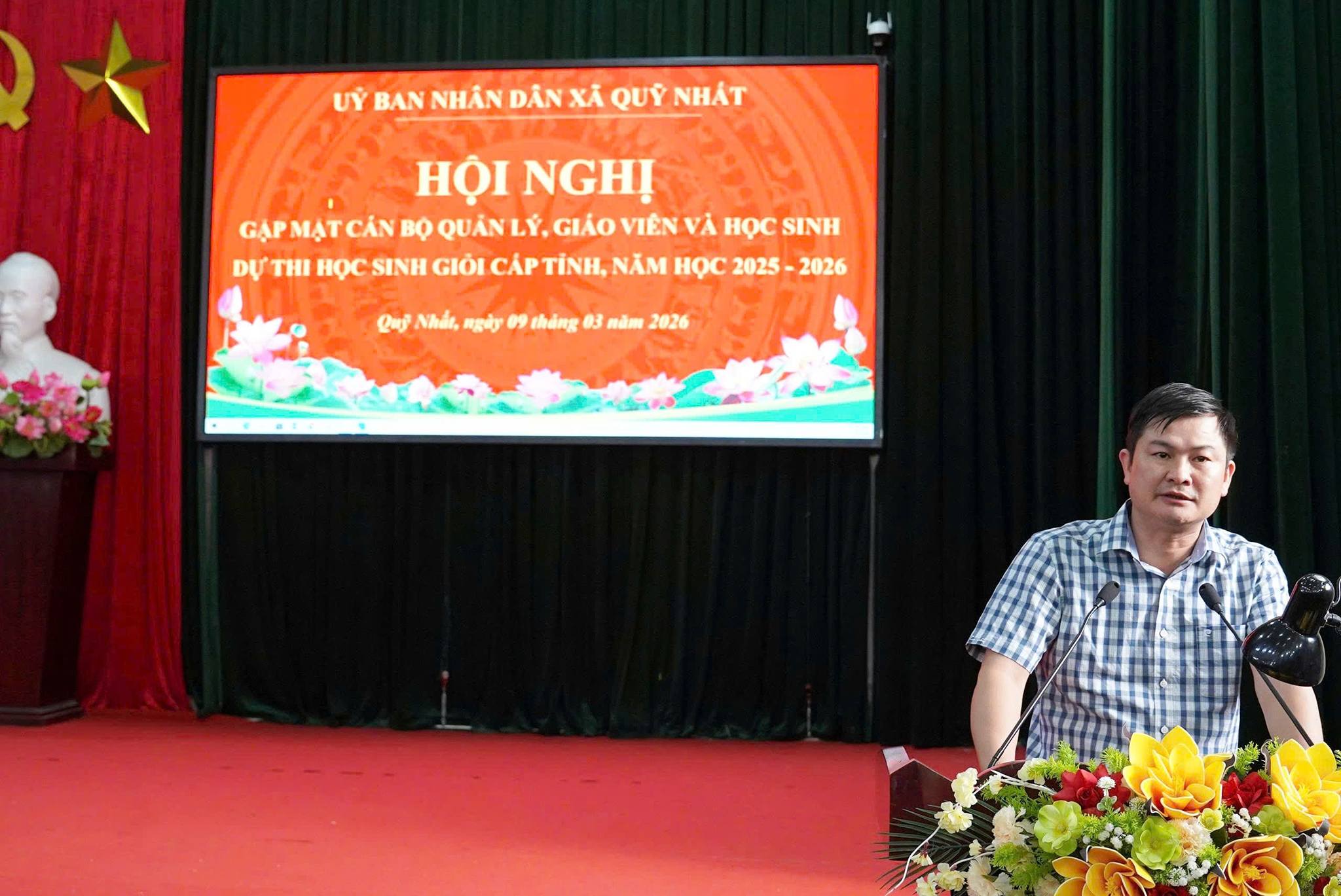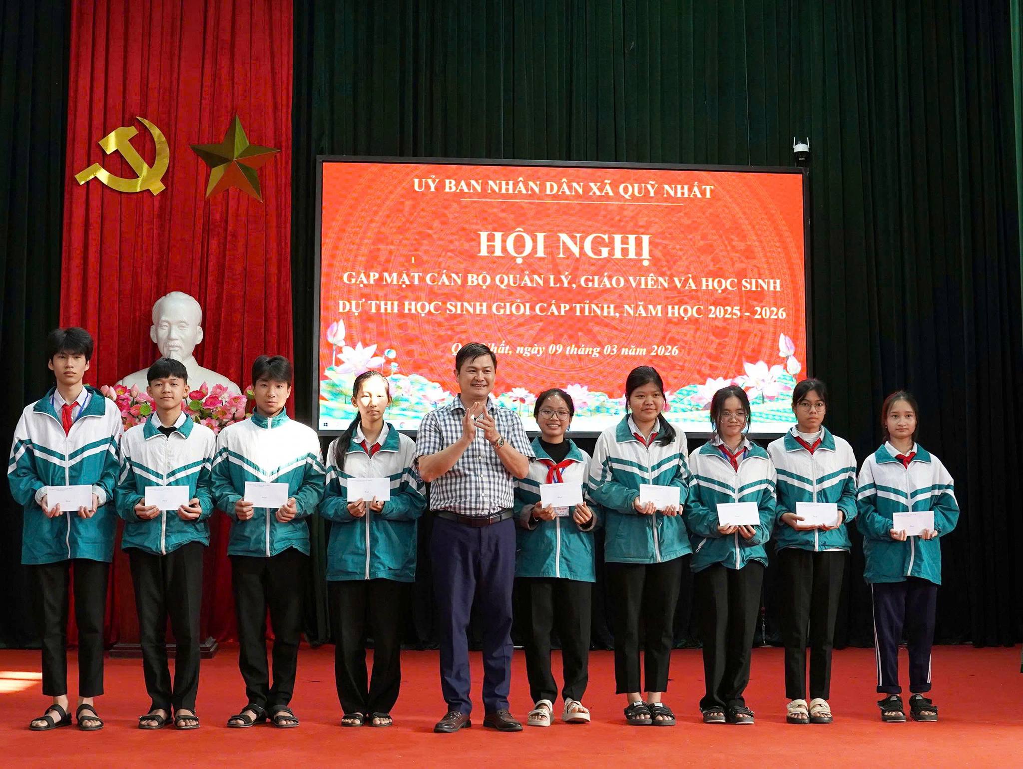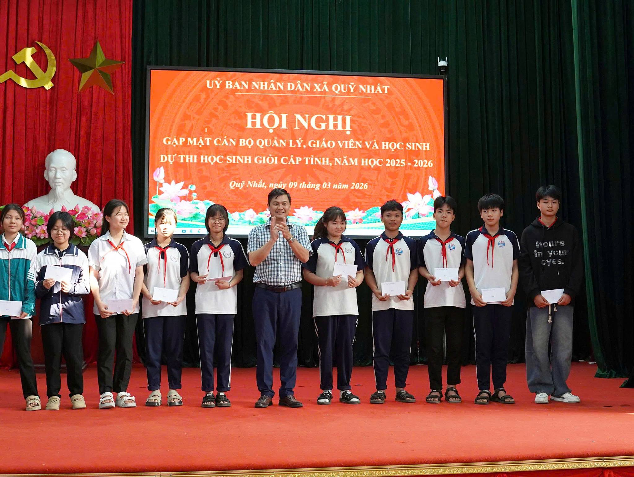 Đặc biệt, sự quan tâm, chỉ đạo sát sao của Đảng ủy, HĐND, UBND xã Quỹ Nhất đã trở thành nguồn động lực to lớn, tiếp thêm sức mạnh cho thầy và trò nhà trường. Nhằm động viên, khích lệ tinh thần và tiếp thêm niềm tin cho các em học sinh trước khi bước vào kỳ thi quan trọng, sáng ngày 09/3/2026, UBND xã Quỹ Nhất đã tổ chức Hội nghị gặp mặt đội tuyển học sinh giỏi tham dự kỳ thi chọn học sinh giỏi cấp THCS tỉnh Ninh Bình năm học 2025 – 2026.