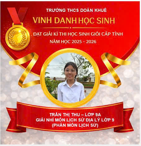 🌟 Trường THCS Doãn Khuê tự hào thành tích học sinh giỏi cấp tỉnh – Dấu ấn từ địa phương xã Quỹ Nhất 🌟