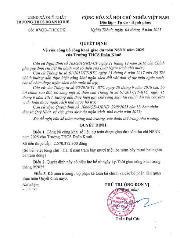 CÔNG KHAI QUYẾT ĐỊNH BÀN GIAO NGÂN SÁCH XÃ NĂM 2025